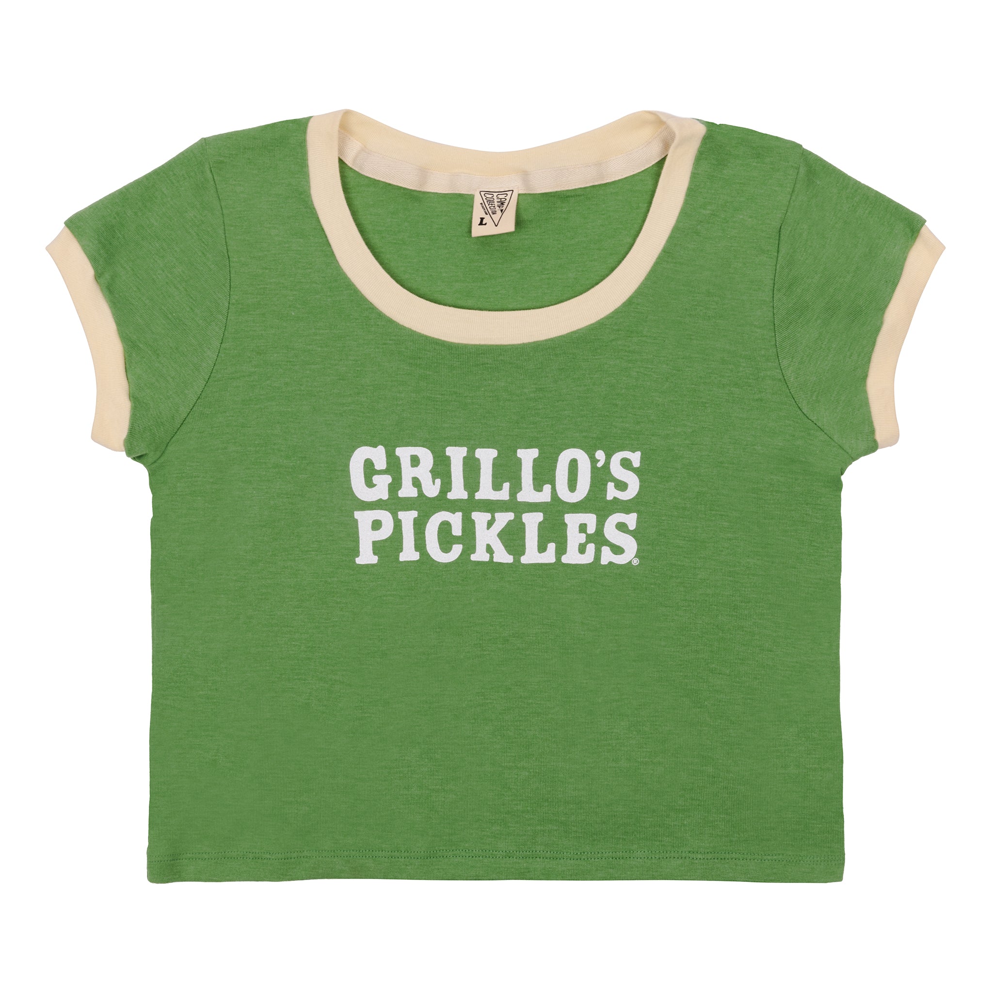 Serve up effortless retro style with the Grillo’s Vintage Wordmark Crop Tee. Featuring our classic wordmark in a faded, vintage print, this soft cotton crop is perfect for laid-back days, concerts, or pairing with high-waisted jeans. Lightweight, comfy, and full of pickle personality.