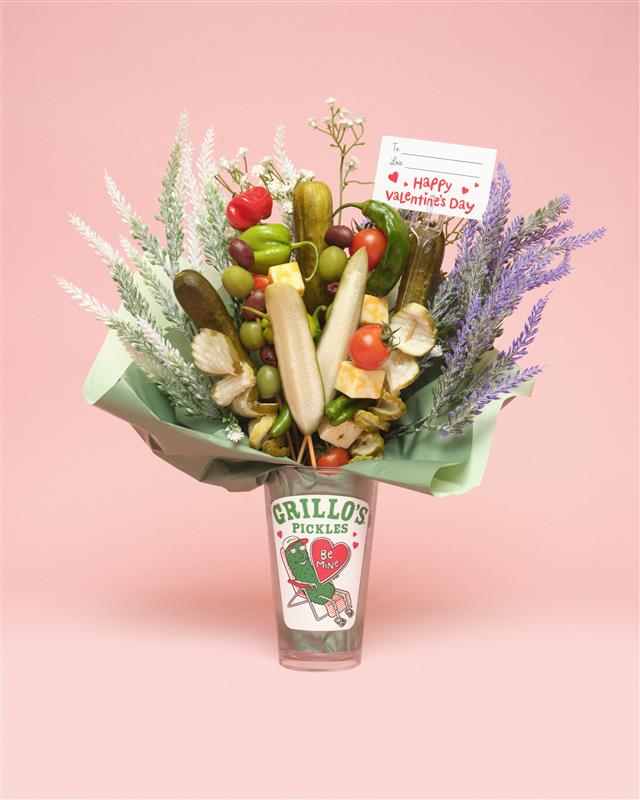 This Valentine’s Day give the gift of Grillo’s Pickles with our limited-edition Pickle Bouquet Kit! Each do-it-yourself kit includes a coupon for a FREE jar of Grillo’s pickles, a foam base, tissue paper, floral filler, a collectible 16oz Pint Glass (your "pickle vase”), skewers, and a personalized card. Get creative with optional extras like fresh dill, cherry tomatoes, or mozzarella balls (not included).