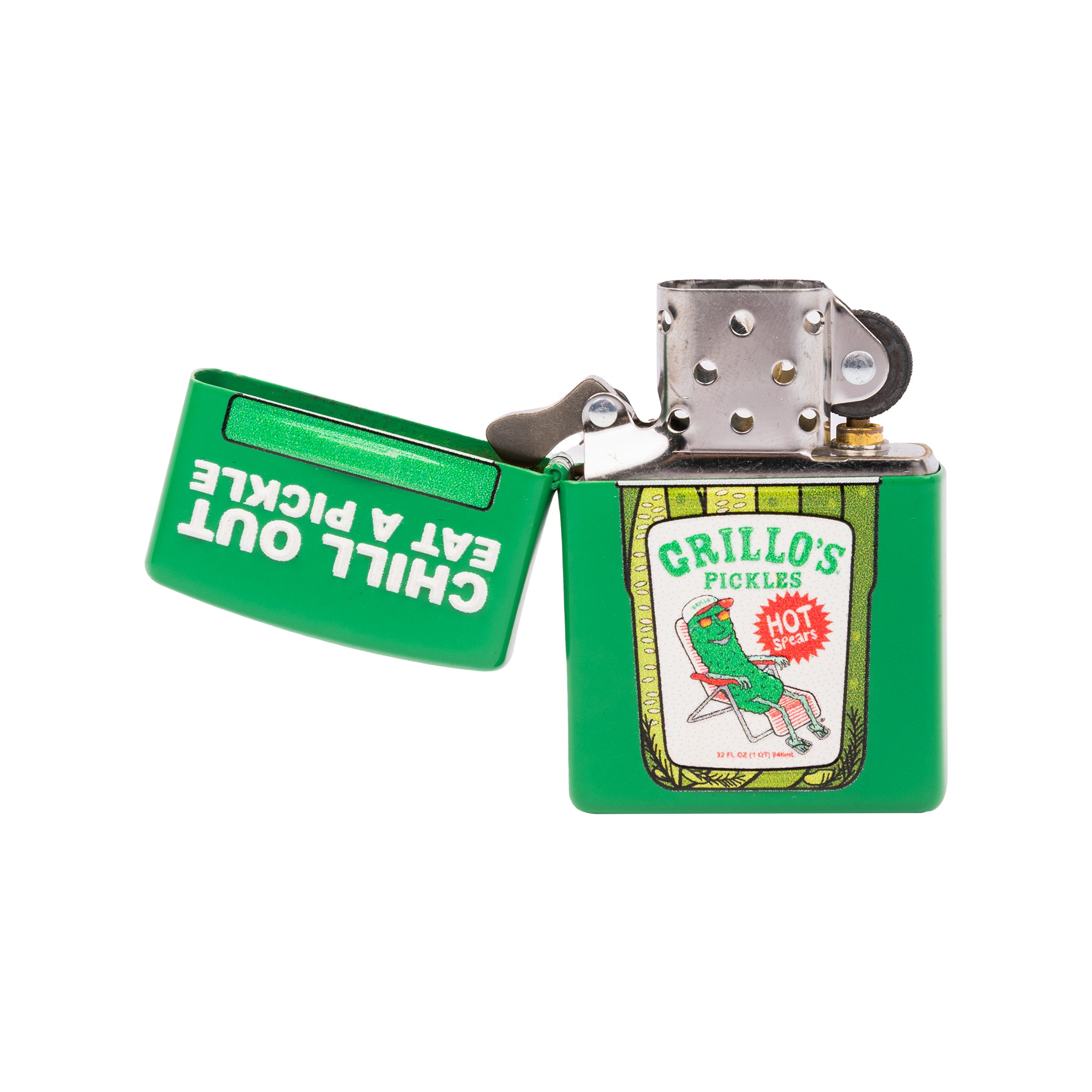 Grillos x Zippo Windproof Lighter In this limited-edition drop, the iconic Zippo windproof lighter features a jar of Grillo’s Hot Spears using Zippo’s tactile Texture Print process over their specialty Grass Green Matte finish. On the reverse, Sam Sam lounges beneath the Grillo’s wordmark in a bold Color Image design. Each of the 50 models available arrives in gift packaging. Don’t forget your lighter fuel! zippo.com
